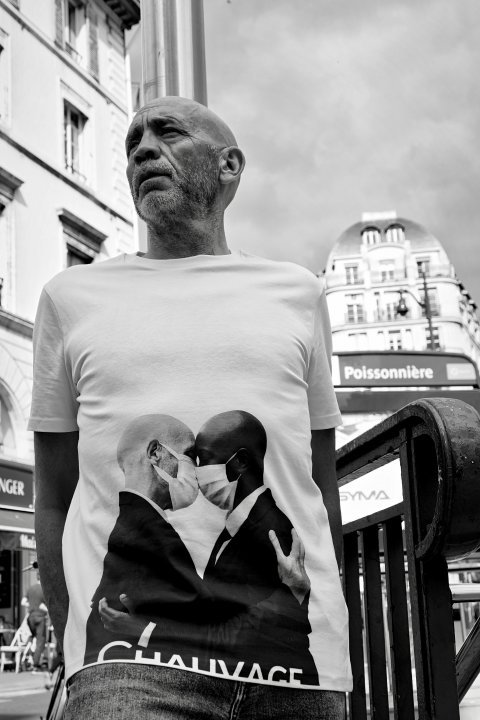 La célèbre photo du #covidkiss illustre désormais un Tee-shirt 100 pour cent bio, haute gamme chez Chauvage (la seule marque à faire l’éloge de la calvitie). Un Objet Collector, tendance et un hymne à la tolérance qui pourrait bien faire le tour du monde.