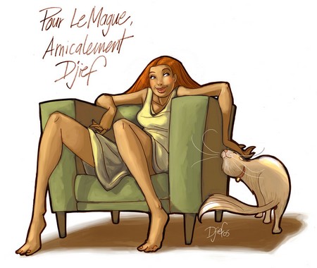 C’est lors de mon surf quotidien que je suis tombé sur le travail coloré d’un québécois talentueux qui s’appelle Djief. Intrigué j’ai regardé avidement tous ses films-BD en flash puis ses travaux de webdesigner, et je crois avoir dénicher-là un artiste de très haut niveau.