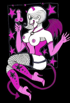 ajoute à ça une petite propension au mysticisme - d’où mon intérêt pour les anges et les démons, un goût prononcé pour les contes et les légendes et hop on mélange le tout. Par contre je ne pratique pas ce que l’on voit dans Ozfactory ! Je suis seulement attachée à l’esthetique des pin-up, du fétichisme, et du SM. C’est comme un jeu qui défoule, avec parfois l’expression de certaines de mes peurs comme celle de la mort, la souffrance ou de la perte. Ce sont des choses que je ne sais pas exprimer en mots, alors je les mets en dessins.