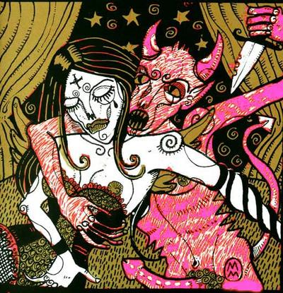 Je connais le travail de Anne Van Der Linden, on a collaboré toutes les deux avec Bongoût. C’est eux qui ont publier mon premier livre en sérigraphie. Quand à mon imaginaire je le travaille depuis toute petite ! Il faut dire que le premier livre que m’a offert ma mère, c’était un livre dont le héros était un vampire. Ca doit laisser des traces. Je lis d’ailleurs beaucoup...Dès qu’un sujet me passionne je me documente. J’ai toujours eu un penchant pour les gens avec des univers trés - trop ? - affirmés.