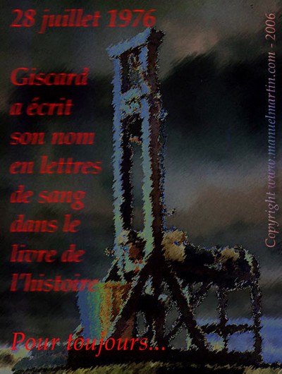 Que nenni, son Excellence Giscard, celui qui s’invitait chez les éboueurs pour montrer qu’il était très « peuple » quoi... va froidement, politiquement, envoyer à l’échafaud un jeune homme de 22 ans qui a toujours clamé son innocence, à part d’étranges aveux « offerts » à des policiers qui ont aussi offert à l’instruction des pièces à conviction définitivement magiques et des témoignages « ciselés ».