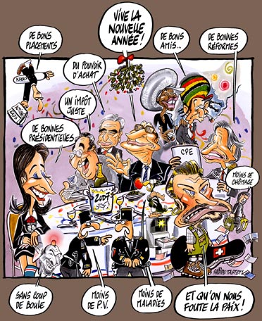 Bonne année à vous toutes et vous tous, qui avez la gentillesse d’apprécier mes dessins et de visiter mon site... pourvu que ça dure !merci, vous êtes des z’amours. Philippe