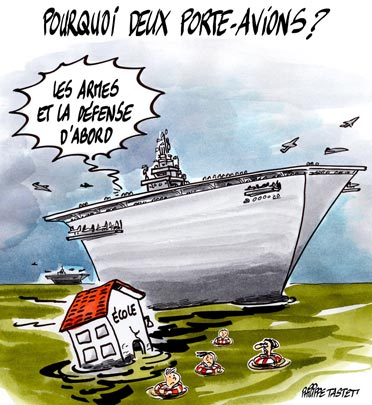 La France a-t-elle besoin d’un deuxième porte-avions ? Personne ne songeait à cette troublante question jusqu’à ce que Sarkozy dise que oui, pourquoi pas ? — que Ségolène Royal affirme qu’elle l’échangerait pour un grand programme d’éducation nationale, que Sarkozy en remette une couche, que Le Pen dise comme Sarkozy : oui au deuxième porte-avions, que Bayrou mette son grain de sel en affirmant qu’il faudra faire le deuxième porte-avions en coopération européenne avec les Britanniques, que Ségolène revienne là-dessus et fasse dire que, après tout en coopération européenne, pourquoi pas sans aucun doute ?— et ainsi de suite…