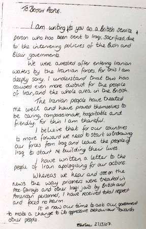 Faye Turney et ses camarades filmés à la télévision iranienne :
