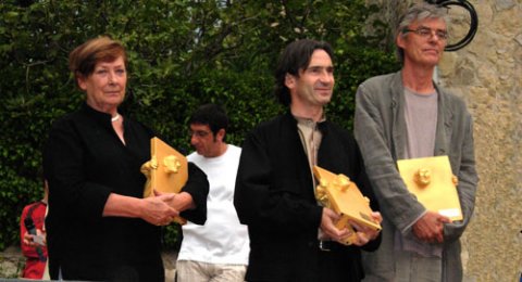 Et le Grand PRIX !!! ... Le Grand Soleil d’Or, celui qui succède à Jacques TARDI, Président d’un week-end, n’est pas tout seul ... ils sont deux : PETERS & SCHUITTEN pour "Les Mondes Obscurs" dont un nouveau cycle débarque aujourd’hui, avec une histoire de grain de sable où l’infime peut parfois donner une importance à une personne. L’architecte et son scénariste vont devoir s’inspirer du village perché pour réaliser l’affiche pour le 20eme Festival BD de Sollièsville !