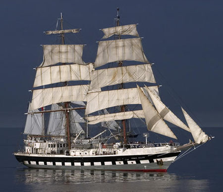 Mir désigne la paix en langue russe. Fleuron de l’Académie militaire de Saint-Peterbourg, ce navire est le symbole de l’ancienne tradition de l’époque des tsars. Il mesure 108 mètres de longueur et peut embarquer 114 cadets en formation. Bien toilé pour sa taille, il est capable de bonnes moyennes en mer.