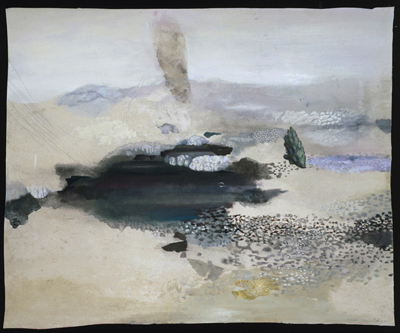 Les séries Nappes et Hippocrène ne sont pas des à-plats de sens où le désert se serait invité même si l’impression d’un sable omniprésent laisse le temps à l’œil de découvrir quelques objets oubliés (?) qui ne relèvent point d’un désordre. Au contraire, ils témoignent d’un ressac de la mémoire et d’un temps ancien où la montre s’oubliait pour laisser s’écouler les minutes et étudier tranquillement ce qu’il y avait à glaner autour de soi … Un coquillage représente-t-il bien un coquillage ou sa valeur doit-elle se lire en fonction de sa place dans le dessin, ou des traits de crayon – parfois plusieurs fois répétés – qui l’entourent ?