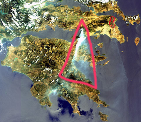 En effet, tout le monde peut constater le cône de fumées qui s’étend sur des centaines de kilomètres dans le ciel grec, depuis les photos prises par le satellite ESA Envisat. Son instrument optique, réglé en mode haute résolution, peut offrir une résolution spatiale de 300 mètres. L’une des tâches les plus difficiles, pendant et après les feux, est d’obtenir une vue d’ensemble des dégâts et de leurs évolutions. Les satellites d’observation sont donc utilisés pour détecter de l’espace des foyers d’incendie afin d’évaluer rapidement l’étendue des secteurs brûlés.