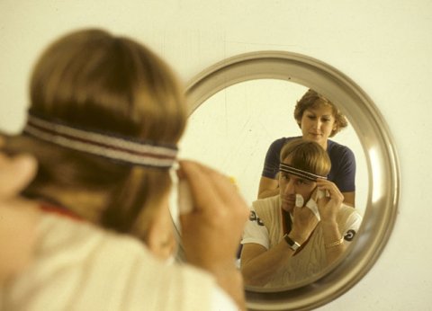 porté par) le bandeau en éponge de Björn Borg, et très probablement