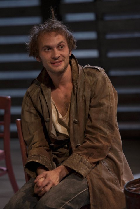 L’histoire du Baladin du Monde Occidental, subtilement tordue et diabolique, serpente autour de Christopher Mahon, personnage principal, interprété par Thomas Durand. Arrivant une nuit dans une taverne isolée, il dit avoir tué son ivrogne de père. L’ambivalence des sentiments face à cet acte donne tout le sel à la pièce, qui progresse, au fil de deux heures, en une rythmologie prenante. Nous sommes confrontés parallèlement à la transformation progressive de Mahon, qui passe par divers états psychologiques (apeuré, conquérant, modeste, fier…) et au regard étrangement bienveillant de cette petite communauté villageoise, qui accueille en héros le meurtrier supposé.