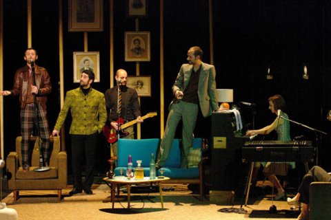 Alexis Armengol s’est imprégné de cette œuvre, choisissant la traduction d’André Markowicz et Françoise Morvan. Avec finesse, tout en évitant malicieusement les formes narratives traditionnelles, il nous propose ce Platonov mais, agréable apéritif tchékhovien, servi sous la forme d’un théâtre-concert. Dialogues tumultueux, chant et musique (piano et guitare) viennent se frotter à l’attention du spectateur durant deux courtes heures. Platonov mais débute par des retrouvailles entre amis lors d’un week-end. Platonov, personnage central mais indéterminé, nous y apparaît sous des traits sarcastiques, tantôt enfantins, tantôt emplis de gravité. La pièce nous suggère son ascendant moral sur le petit groupe, constitué de Sergueï (fils du général Voïnitsev, mari de Sofia), Nikolaï (frère de Sacha, fiancé de Grékova), Anna (jeune veuve), Sofia (épouse de Sergueï) et Sacha (épouse de Platonov), et plus particulièrement la fascination – parfois répulsive – qu’il exerce sur les trois derniers personnages.