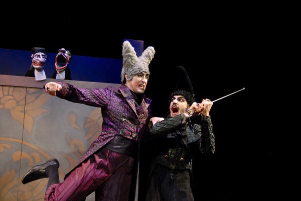 Des éclairages modernes, une musique rigolote et des costumes baroques donnent un ton stylisé à cette pièce très joliment grinçante. La grande trouvaille scénique réside dans un gros cube qui tourne et se déplie, offrant au spectateur la vision de comédiens, aux déguisements animaliers, entrant et sortant précipitamment d’un sac à malice. La remuante adaptation de Volpone subtilement simiesque nous plonge dans un climat résolument drôle entre bédé et film parodique. L’apparition de marionnettes - (les juges vénitiens) - offre un nouvel élan comique à cette comédie menée tambour battant par des comédiens, qui par leur voix et une gestuelle étudiée offrent à ce Volpone toute sa saveur acide et son charme burlesque.