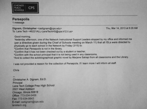 PERSEPOLIS banni des écoles de Chicago !