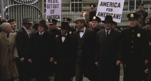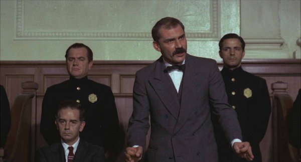 Le premier procès commence le 22 juin 1920, avec le regard flou de certains témoins qui disent pourtant les avoir reconnus. Dès le départ, Le film montre déjà parfaitement que les dés sont pipés à leur encontre. Pour une histoire de moustache en nœud de boudin, Vanzetti écope de 12 à 15 années de taule, alors que Sacco passe à l’as ayant réussi à prouver son pointage à l’usine à l’heure du holdup.