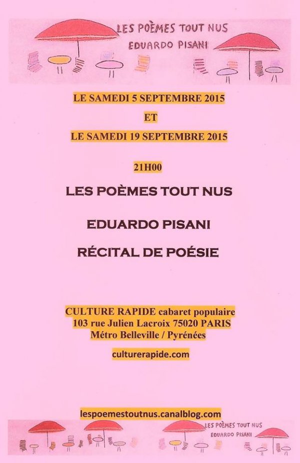 Aujourd’hui je suis poète et donc j’ai lu à l’antenne mes poèmes et j’ai annoncé mes récitals de poésie du mois de septembre.