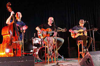 Bon, pour ceux qui ne connaissent pas encore Karpatt, excellent trio de chansons manouches, il faut absolument qu’on se parle maintenant. Composé de Fred (guitare) Hervé (contrebasse) et Gaétan (guitare solo), ces trois musiciens de talents nous ont vraiment offert deux belles soirées à la Maroquinerie.