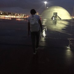On marche le long de l’Axe Monumental. On croise des dizaines de gens et des robots, il ferme les yeux à chaque fois et inspire profondément, comme pour entrer en contact avec le monde, à la recherche d’un parfum. Il me parle de sa vie, de son désir de devenir comédien, de faire du théâtre, du cinéma.