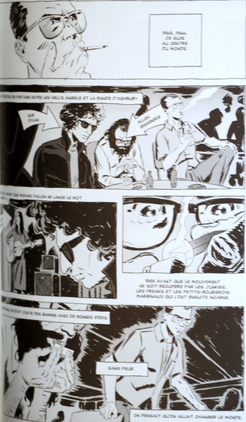 Dans les années 65, il se sent au centre du monde. Il se gave de la littérature de la Beat Generation et croise les milieux underground de l’époque, tels qu’Alan Ginsberg, Bob Dylan, Joan Baez… Crachant à la gueule au passage, comme l’a fait Zappa contre le mouvement pisse and love, dont le seul objectif était de se droguer sans aucune arrière-pensée politique.