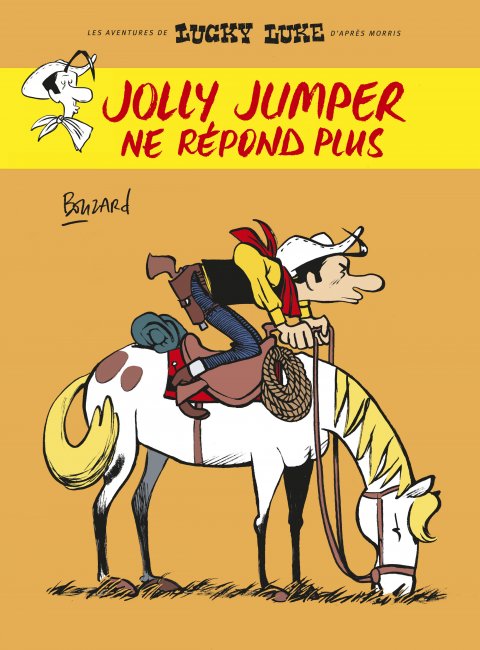 Pour fêter les 70 ans de Lucky Luke, Bouzard a revisité pour notre plus grand plaisir ce classique avec son humour bien à lui. Il déchire les lettres de noblesse du héros au point de le grimer et le tourner en dérision. Allo, allo : « Jolly Jumper ne répond plus » La gent animale a encore de belles heures devant elle à se fendre la gueule en BD…. !