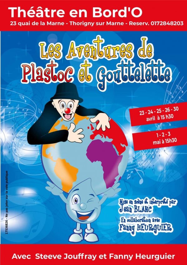 Puis vient son nouveau spectacle "Les aventures de Plastoc et Gouttelette " à partir de Mai toujours à La Comédie St Michel et pendant les vacances de Pâques au Théâtre en Bord’O a Thorigny aur Marne.