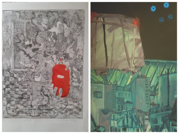 4. Tu fais de la peinture figurative, abstraite, de l’acrylique, de la gravure... comment ça se décide ce fond et cette forme-là ?