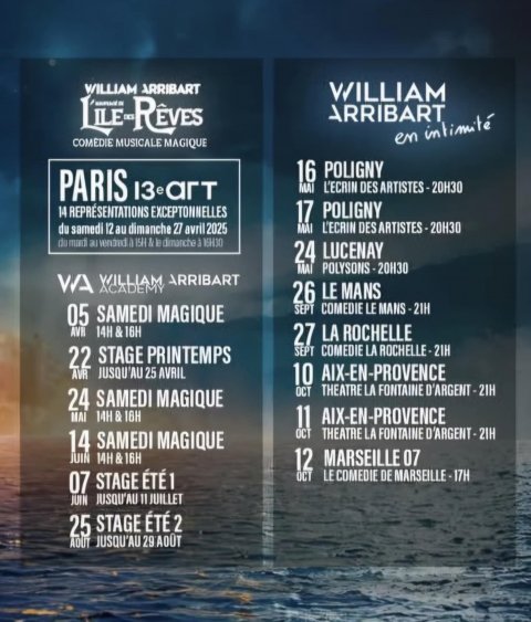 C’est la première fois qu’on mélange le genre de la comédie musicale avec celui de la magie dont William Arribart est un grand spécialiste depuis plusieurs années déjà.Ses fascinants numéros de magie lui seront d’un grand secours dans cette fantastique aventure menée tambour battant.