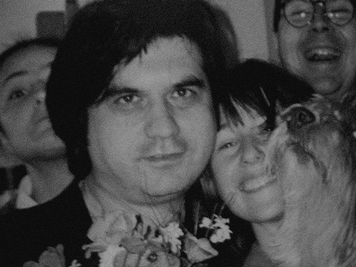 Dès l’ouverture du premier album je tombe sur une photo de groupe datant de fin Mars ou début Avril 1996. Sur celle-ci on distingue, outre un chien blanc très charismatique, plusieurs anonymes, mais à la droite de mon Edouardo, je reconnais immédiatement une jeune femme devenue célèbre depuis 5 ans dans le Paf puisqu’il s’agit de la directrice de la Star Academy ; Alexia Laroche Joubert.