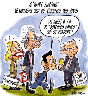 Le « happy slapping » : ce nouveau « jeu » bête et méchant importé d’Angleterre où il est à la mode chez les adolescents, consiste à gifler ou à boxer une personne, prise au hasard, dans un lieu public ou un établissement scolaire. La scène est filmée grâce à un téléphone portable, et les images mises en ligne sur internet pour diffuser plus largement ce genre « d’exploit » !