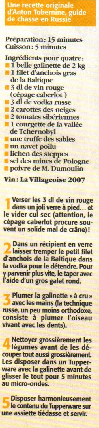 Ah, en voilà une bonne question. Oui, j’en ai une que nous avions publiée dans la RNC d’avril 2005. Il s’agissait d’un poisson d’avril. Les lecteurs ont apprécié...