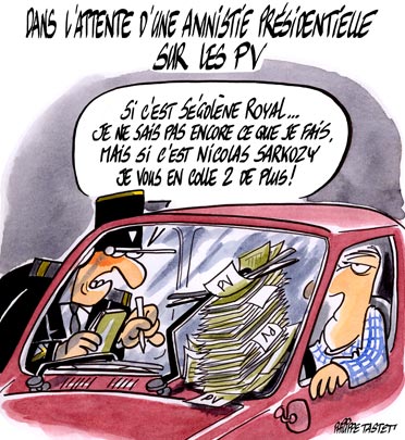 L’hebdomadaire Auto-Plus a interrogé les candidats sur ce sujet polémique : que feront-ils s’ils sont élus ? Pour Nicolas Sarkozy, c’est un « non » catégorique : « Je suis contre une amnistie et cela vaut pour tous ceux qui contreviennent à la loi ». Même avis pour François Bayrou qui estime que l’amnistie est une mesure « incivique ». A gauche, Olivier Besancenot de la LCR et la candidate du PC Marie-Georges Buffet, sont pour l’amnistie des PV de stationnement.