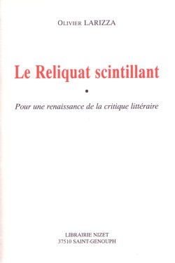 Le Reliquat scintillant, Olivier Larizza. Librairie Nizet.
