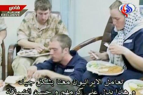 Faye Turney et ses camarades filmés à la télévision iranienne :