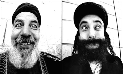 Sans nul doute, l’image première et définitive que l’on conservera de cette opération, de ce livre, est le triptyque des trois religieux : du jamais vu ! Comme quoi, il n’y avait bien qu’en Terre Sainte que l’on pouvait oser imaginer une telle photo, un tel symbole. Cheikh Aziz, Frère Jack et Reb Eliyahu, tous trois grimaçants, louchant, riant aux éclats, côte à côte, en 4 par 3, affichés sur le mur de la honte qui déchire les terres de Cisjordanie, cinglent les esprits comme un nez rouge sur le nez du Premier ministre israélien ou sur celui du Président de l’Autorité palestinienne provoquerait une indignation. Mais pourquoi ? Les deux derniers cités sont bien les pires pitres que nous ayons vus depuis longtemps, pitres de l’absurde et du déni de soi-même, mais bien des tristes sires qui n’ont rien de bon à apporter à leur peuple ; tandis que nos trois lurons, tout imprégnés de leur culture et de leur religion, semblent se moquer d’eux-mêmes comme du destin, et faire ici un pied de nez au malin en lui démontrant que tout homme est identique à son prochain, et qu’il n’y a nulle part, ni en ce bas monde, ni dans les cieux, ni dans les croyances diverses et variées, une once de raison, d’explication ou de justification, qui autorise, qui incite, qui justifie, d’exterminer son prochain …