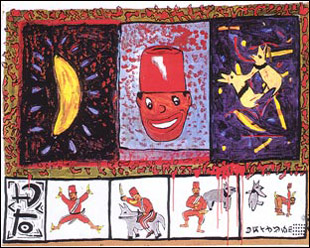 Ce gavroche de la peinture a fait sa partition en noir, blanc et doré ; Combas, lui, a remplit l’espace avec une profusion de couleurs dans sa veine figurative tissant néanmoins sur la toile des consonances abstraites.