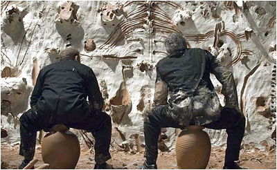 A la fin, complètement maculé d’argile blanche et rouge, Barceló se glisse, tête la première, dans le trou qu’il a lui même creusé … laissant, après avoir dessiné une dernière bête gigantesque, le silence comme testament après être rentré dans son œuvre.