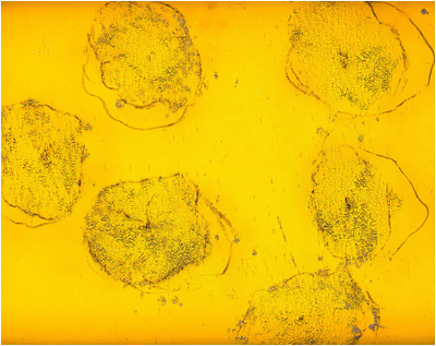 De Banc de poissons bleus (2002) où la beauté sous-marine se donne sans retenue, ou Jaune piquant (1996) tableau centrifuge faussement simple qui révèle une beauté explosive, à Paysage pour aveugles (1989) qui démontre que des couches de blanc successives force l’attention en rappelant ce braille tactile qu’il faudrait toucher pour lire le tableau, Barceló pose ses jalons qui irradient et semblent vouloir nous avaler. Car, à force de rester face à ses toiles, on s’y enfonce dangereusement, on y plonge avec délice à la recherche du plaisir.