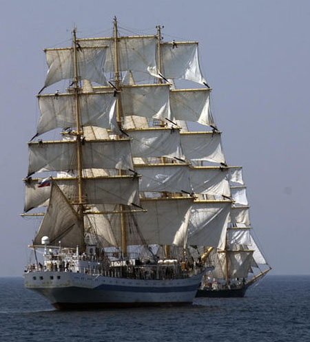 Mir désigne la paix en langue russe. Fleuron de l’Académie militaire de Saint-Peterbourg, ce navire est le symbole de l’ancienne tradition de l’époque des tsars. Il mesure 108 mètres de longueur et peut embarquer 114 cadets en formation. Bien toilé pour sa taille, il est capable de bonnes moyennes en mer.