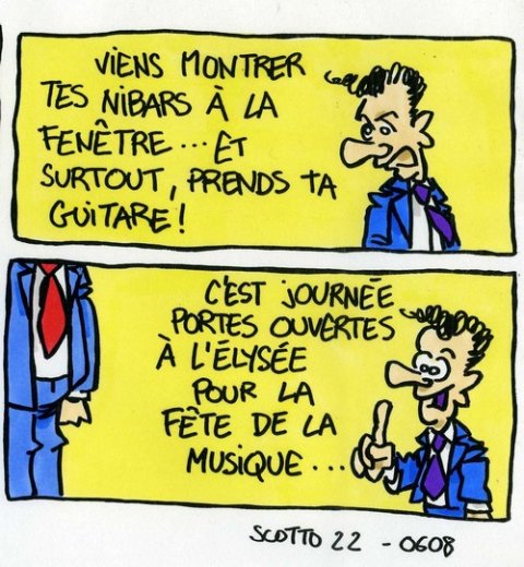 Pourquoi notre président croirait-il que les Français n’ont plus de quoi payer leur gaz, leur essence ou leur kilo de patates, quand ses compatriotes ne demandent qu’à acheter le disque de sa femme ? Objet de charme, certes, mais qui peut malgré tout paraître superflu au nécessaire de survie du ménage… Il a alors raison de penser, notre président, que nous avons les poches encore trop pleines et qu’il serait bien avisé de nous en prendre davantage, en continuant la réforme de l’État ainsi qu’il l’a promis.