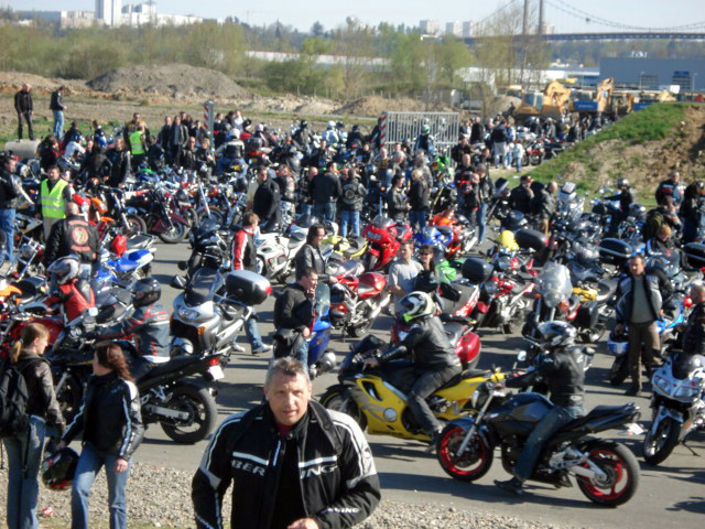 En route. J’en profite pour admirer quelques phénomènes tout à fait intéressants de la gent féminine, puisque hélas, mille fois hélas par trop minoritaire ! Une, entre autre, pilote une moto sportive et jette des éclairs à travers la visière de son casque. Elle n’a rien à envier aux couilles des mecs et éprouve certainement autant si ce n’est plus de plaisir à mouiller son bolide. Elle est menue, ce qui prouve encore une fois que la force débile n’a rien à voir avec la conduite d’une moto. Et vlan dans les gencives des machos à gogo. Allez les filles, emparez-vous des meules de vos amoureux ou amoureuses et soyez fières et heureuses comme des amazones à semer votre zone chez les préjugés à la noix. Une autre encore opère le charme discret de la bourgeoisie bordelaise. Assise bien droite, classieuse à l’aise, ses derbies jaune canard titillent les rayons du soleil. La comique croupière porte fourrure autour du col du cuir et talons aiguilles. Y’a pas d’anguille sous roche, faudra que j’en cause à Brigitte Barbot. Pour l’occasion, elle a sorti l’engin et toute la panoplie. Fin prête, elle désire qu’on l’admire sous son travestissement des apparences trompeuses. Trop drôle, je n’en perds pas une miette. Il y a aussi ces enfants derrière papa ou maman et les conjoint(e)s fermant le banc sur une autre bécane. Quels souvenir impérissables auront ces bambins de ce jour printanier !!!