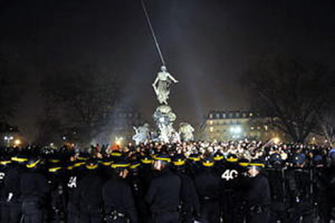 Les jeunes restés sur la place à écouter de la musique se sont fait charger. En moins d’une heure, 300 personnes étaient arrêtées et 49 sont passées de la simple interpellation à la mise en examen. Aux arrestations musclées s’ajoutent les violences contre des dizaines de jeunes manifestants sur la place et aux abords du lieu de dispersion. En fait tout cela ressemblait à la mise en place d’une véritable souricière. Plus d’info sur ce site.