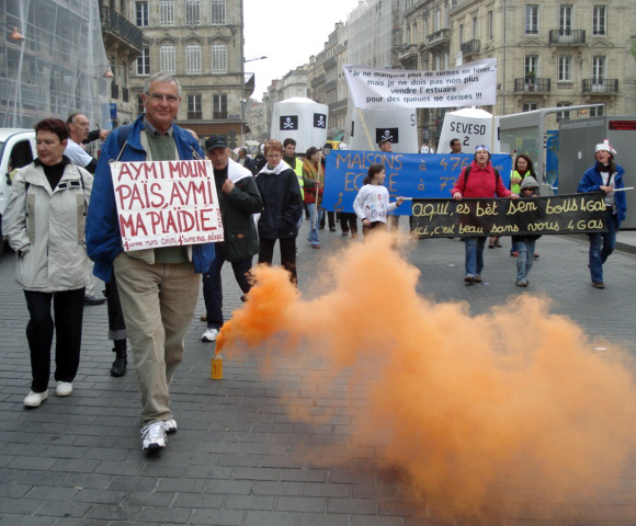 En fête, des ploucs, des bouseux de la Pointe du Médoc et de Charente-Maritime ont débarqué à la capitale proprette de Gironde, crotter les pavés et gueuler : ON N’EN VEUT PAS / Bordeaux Unesco, l’estuaire sans Seveso / Danger méthanier / Terminal méthanier nocif pour la santé / Pas de cerises en hiver, pas de gaz sur l’estuaire…
