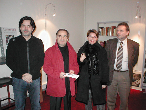 Christophe Barratier remettant un pass "un an de cinéma" au millionième spectateur du Cinespace de Beauvais-Oise.