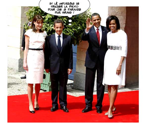 Et ce ne sont pas les clichés que l’Agence France-Presse que la plupart des journaux étrangers retiennent pour couvrir l’événement. Même le très francophone 20 minutes, dont le site Internet est parmi les plus visités pour ce qui concerne l’information en ligne, s’est précipité pour afficher le cliché que Larry Downing a réalisé pour son concurrent Reuters. Nicolas Sarkozy, loin d’apparaître rayonnant de bonheur en compagnie du chef d’État le plus adulé de la planète, fait grise mine. Un méchant rayon de soleil est-il inopportunément venu frapper sa prunelle ?