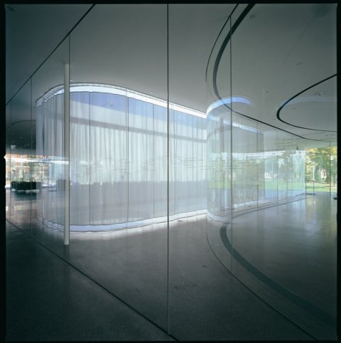 Dans un autre genre, l’incroyable Pavillon de verre du Toledo Museum of art (Ohio, USA) de Kazuyo Sejima et Ryue Nishi, en impose tout autant : la lumière qui arrive horizontalement autour du bâtiment, et en diagonale à travers les cours, est courbée et dispersée dans tout l’intérieur, transportant et mélangeant toutes les images de la nature et celles des visiteurs et des objets d’art.