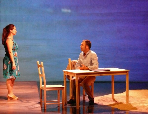 L’histoire d’Eté a pour cadre un petit village de bord de mer. Un jeune couple s’y retrouve, comme chaque année. Mais cette fois-ci il est accompagné d’un bébé. Deux comédiens au jeu subtil occupent la scène. Il y a La femme, interprétée par Isabelle Andréani ; L’homme, par Jacques Descorde. Il s’agit d’une histoire où il ne se passe rien en apparence. Ni éclats, ni drames, ni « élément déclencheur » […], signale Carole Thibaut, auteure et metteuse en scène d’Eté. Et pourtant un puissant climat dramatique émane de cette courte pièce…