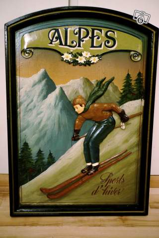 A première vue, ce bas-relief célèbre l’ivresse des sports d’hiver dans nos montagnes d’Europe, comme le suggère son titre sobre : « Alpes ».