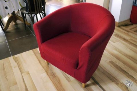 Fauteuil "Tullsta", mobilier suédois (règne du roi Ikéa 1er, XXème siècle après JC). Il est rouge, moelleux, adapté à toutes les fesses. En plus il est déjà monté, vous n’aurez pas à vous battre avec cette maudite clé à six pans et vous faites l’économie des boulettes de renne et du saumon sauce moutarde. Le prix, 35 €, est dérisoire pour un meuble d’époque. Seul inconvénient : vous devrez venir le chercher au 4eme étage sans ascenseur. Mais vous pourrez vous asseoir dedans en arrivant.
