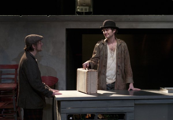 L’histoire du Baladin du Monde Occidental, subtilement tordue et diabolique, serpente autour de Christopher Mahon, personnage principal, interprété par Thomas Durand. Arrivant une nuit dans une taverne isolée, il dit avoir tué son ivrogne de père. L’ambivalence des sentiments face à cet acte donne tout le sel à la pièce, qui progresse, au fil de deux heures, en une rythmologie prenante. Nous sommes confrontés parallèlement à la transformation progressive de Mahon, qui passe par divers états psychologiques (apeuré, conquérant, modeste, fier…) et au regard étrangement bienveillant de cette petite communauté villageoise, qui accueille en héros le meurtrier supposé.