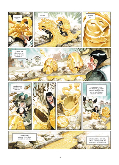 Aurore est une petite fille à la fois courageuse, téméraire, bornée, mais en elle, se cache cette tristesse d’un manque de souvenir de ses parents, tristes de l’avoir perdu par la mauvaise magie de cette rivière dorée qui l’a transformée en rocher. Elle va trouver et apprivoiser d’une amitié tendre, douce, le loup Sokko, pourtant très éloigné des hommes, accepte les bras de la jeune aventurière.
