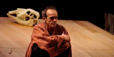 Puis, dans une seconde partie, l’épouse du gouverneur (Natella Abaschvili), qui veut récupérer Michel, assigne en justice sa servante. Le juge (Azdak), personnage loufoque, tranche à sa façon le litige. Même si la pièce pâtit du texte parfois ampoulé de Brecht et de personnages trop stéréotypés (Natella ou le fiancé de Groucha), elle séduit fortement par son mystérieux climat, l’excellence du jeu des comédiens et la crudité sociale du message. Pièce chorale à la scénographie sobre et raffinée, elle enveloppe le spectateur d’un bel élan chorégraphique de lumières et de visages/masques expressifs. Les multiples personnages emblématiques du Cercle de craie caucasien évoluent sur un plateau habité par d’insolites plans de bois inclinés. Ils sont là revêtus de curieuses coiffes de cirque ou d’inquiétants masques de crânes de buffles. Quant à la présence de Michel, elle est subtilement incarnée par le fragile déhanchement d’une marionnette.